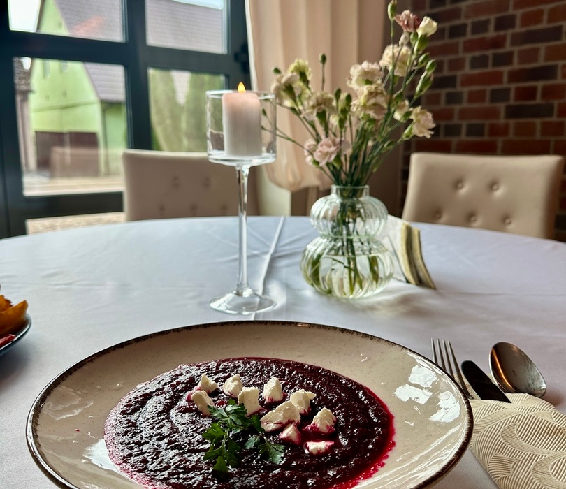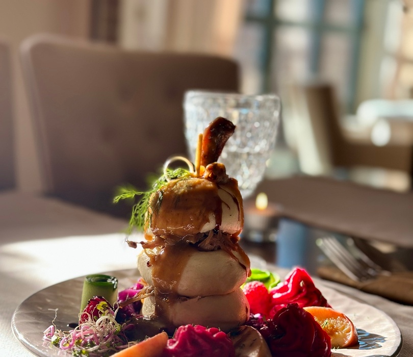 Soczyste żeberka jagnięce z ziołami na talerzu, podane z warzywami i czerwonym winem w eleganckiej restauracji